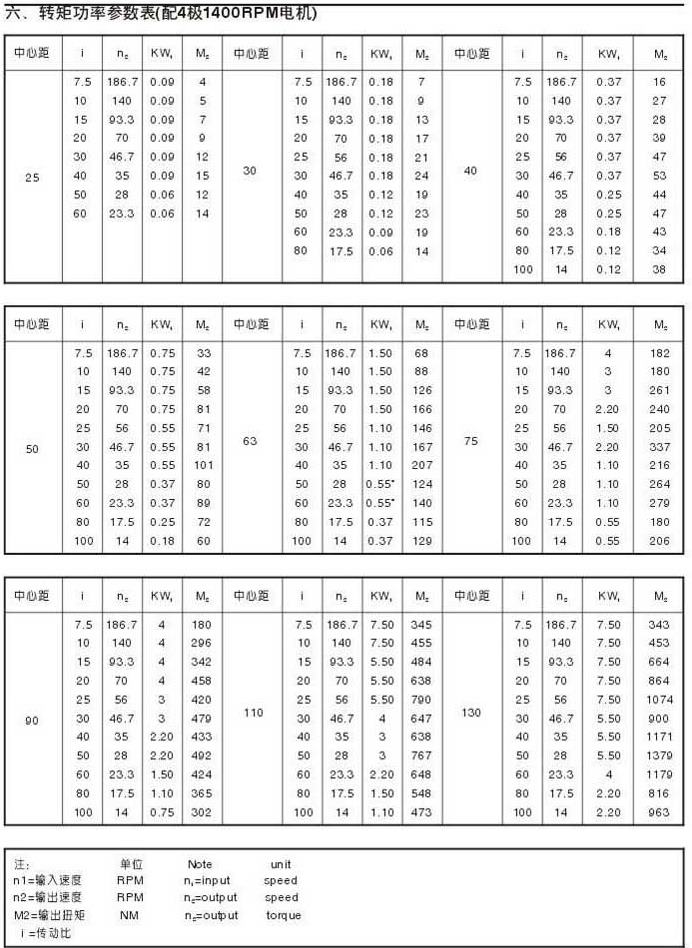 轉(zhuǎn)矩功率參數(shù)表(配4級(jí)1400RPM電機(jī))
