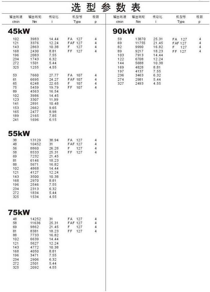 選型參數表45kW (續(xù)),55kW ,75kW ,90kW 142